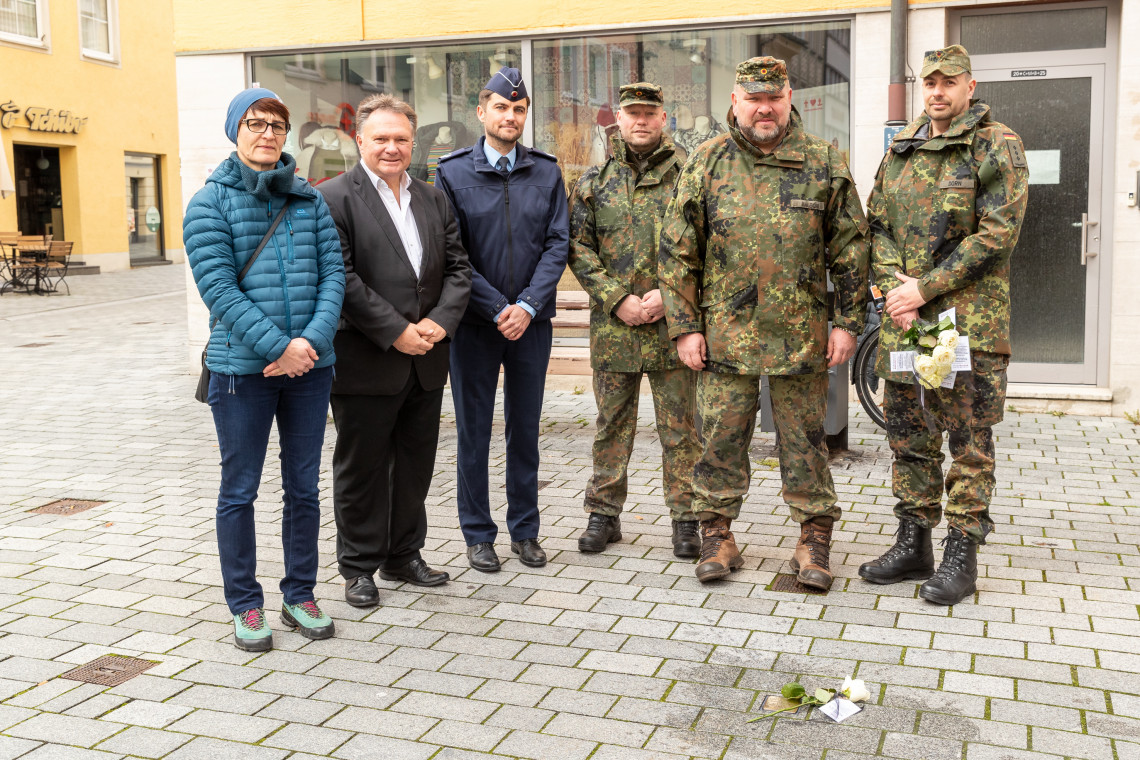 Oberbürgermeister Stefan betonte: „Ich freue mich sehr, dass die Stolpersteine in Kaufbeuren regelmäßig gepflegt werden und wir mit dem Technischen Ausbildungszentrum der Luftwaffe Abteilung Süd einen so verlässlichen Partner gefunden haben. Es ist wichtiger denn je an die Opfer des NS-Regimes zu erinnern. Seit einigen Jahren setzt sich die Stadt Kaufbeuren intensiv mit der NS-Vergangenheit auseinander. Darauf bin ich stolz und ich glaube diese Erinnerungsarbeit ist unerlässlich, um deutlich zu machen welch große Errungenschaften unsere heutige demokratische Grundordnung und die Menschenrechte sind. Die Stolpersteine im Herzen unserer Stadt sollen dafür ein sichtbares Zeichen setzen.“