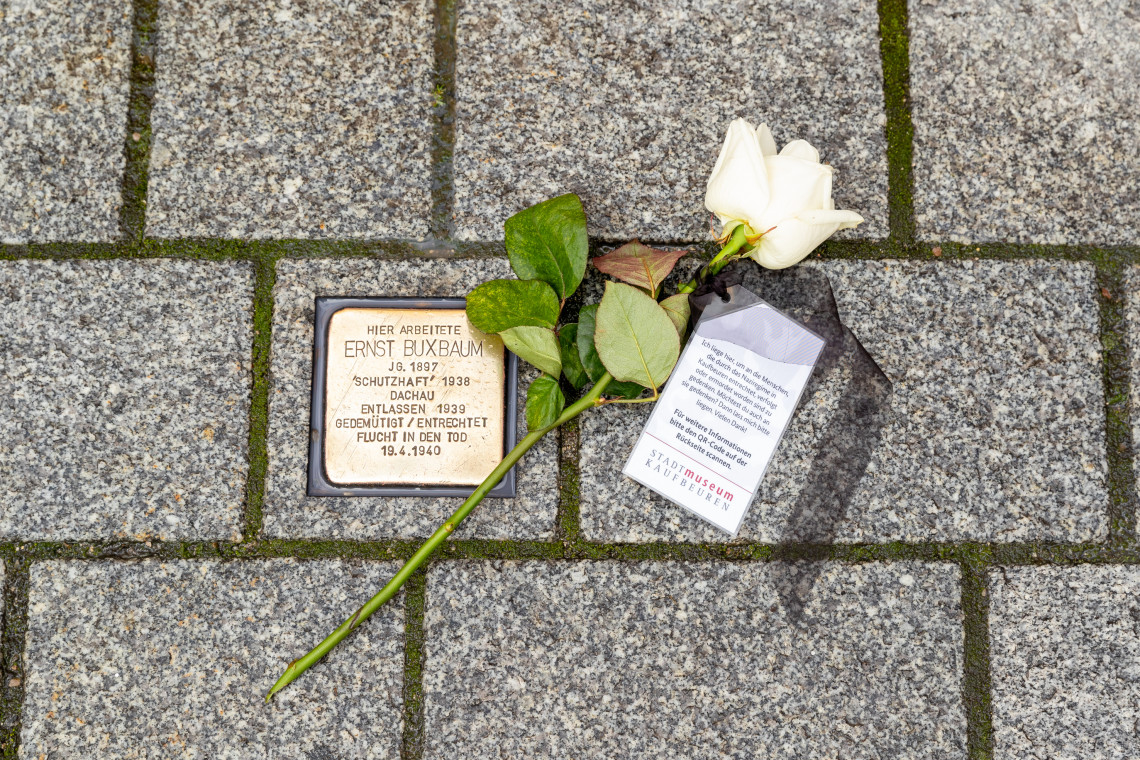 Angestoßen durch das Ausstellungsprojekt „Kaufbeuren unterm Hakenkreuz. Eine Stadt geht auf Spurensuche“, das im August 2020 endete, wurden am 26. September 2020 erstmals Stolpersteine für vier Kaufbeurer*innen verlegt, die während der NS-Zeit ums Leben kamen.