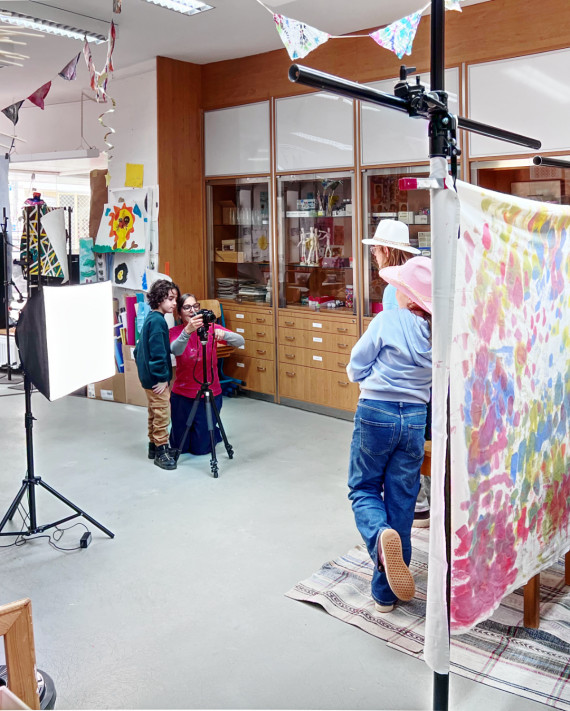 Ein Mitmachheft lädt Kinder ein, die Ausstellung spielerisch zu entdecken. Es enthält Suchspiele, Rätsel und Bastelvorlagen rund um das Thema Fotografie. Ein Mitmach-Tisch steht bereit, an dem die Kinder kreativ werden können.