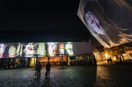 Im November 2021 war Vanessa Hafenbrädls Arbeit "KB - WIRWIRWIR" im Rahmen von "Kaufbeuren leuchtet" als Projektion auf die Fassade des Kunsthaus Kaufbeuren zu sehen (Foto: Christoph Jorda).