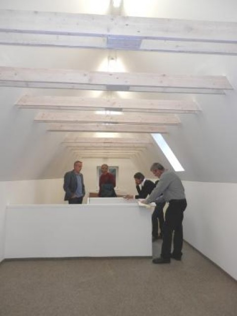 ... aber manche Teile des Museums sind im August 2012 schon so gut wie fertig! Hier haben sich die Architekten Herr Huber und Herr Weber, Bauleiter M. Paul sowie der Hochbauamtsmitarbeiter J. Popp im Dachgeschoss des Verwaltungsgebäudes getroffen, um das weitere Vorgehen zu besprechen.