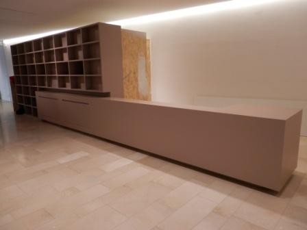 ... schon auf die zukünftigen Besucher. Im September 2012 wurde das Thekenmöbel in das Foyer des Stadtmuseums eingebaut. In enger Absprache mit den Museumsmitarbeiterinnen entwarf das Archtekturbüro Metaraum eine Theke, die allen Ansprüchen genügt: dem Menschen der dahinter arbeitet sowie der Technik die darin versteckt werden muss. Produkte des Shops werden in den Regalen präsentiert.