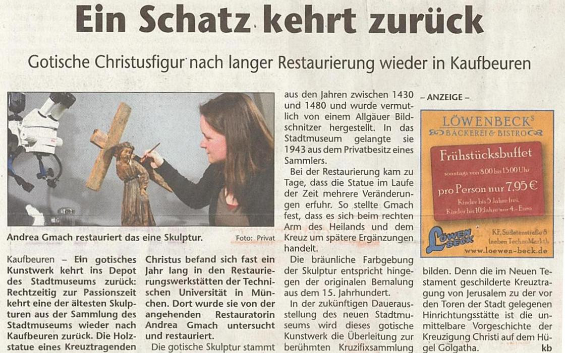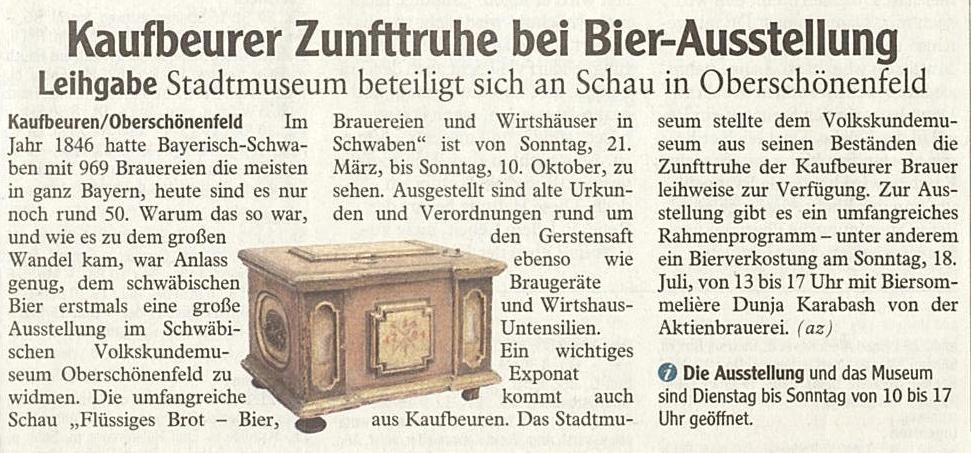 Regelmäßig berichtet die Presse über die Geschehnisse rund um das Stadtmuseum Kaufbeuren. Hier sehen Sie eine kleine Auswahl der Presseartikel: